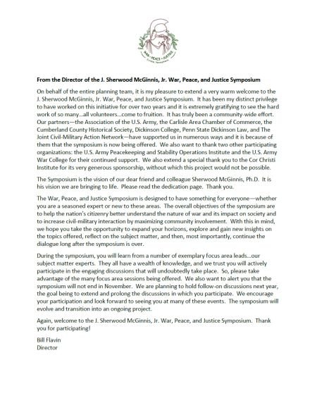 This symposium honors our dear friend and colleague, Sherwood McGinnis. A retired career Foreign Service Officer and friend to the Carlisle community, Sherwood originated the concept of a community-based civil-military dialogue. His idea reflects the deep devotion that he had for public service and the need for an informed, inclusive discussion on national security in our democracy.