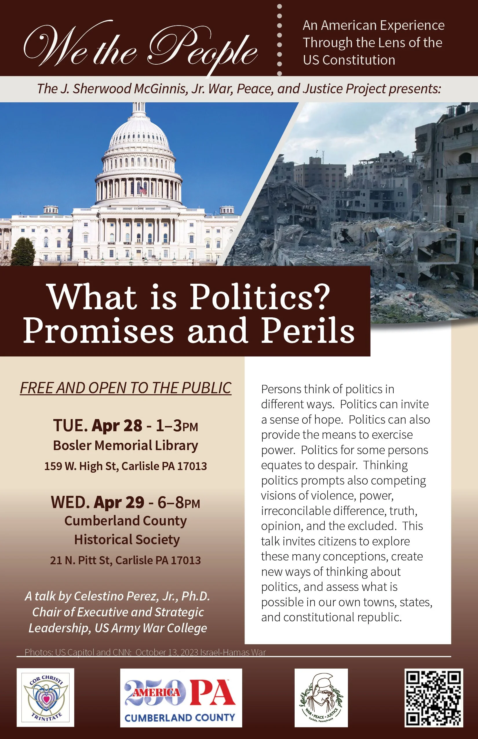 Led by Dr. Celestino Perez, Jr., Chair of Executive and Strategic Leadership, US Army War College, the discussion invites participants to consider how political ideas influence our communities, our institutions, and our sense of justice. Through reflection on themes such as authority, violence, opinion, and inclusion, attendees will be encouraged to think more deeply about their own assumptions and the broader role of politics in a constitutional republic.